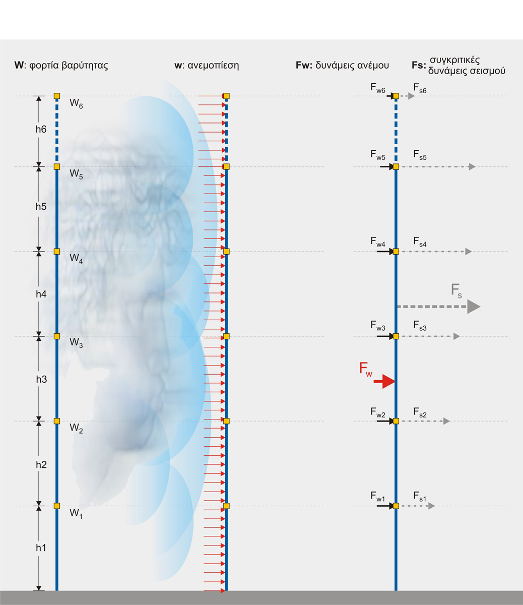 Σύγκριση δυνάμεων ανέμου Fw, με αυτές του σεισμού Fs