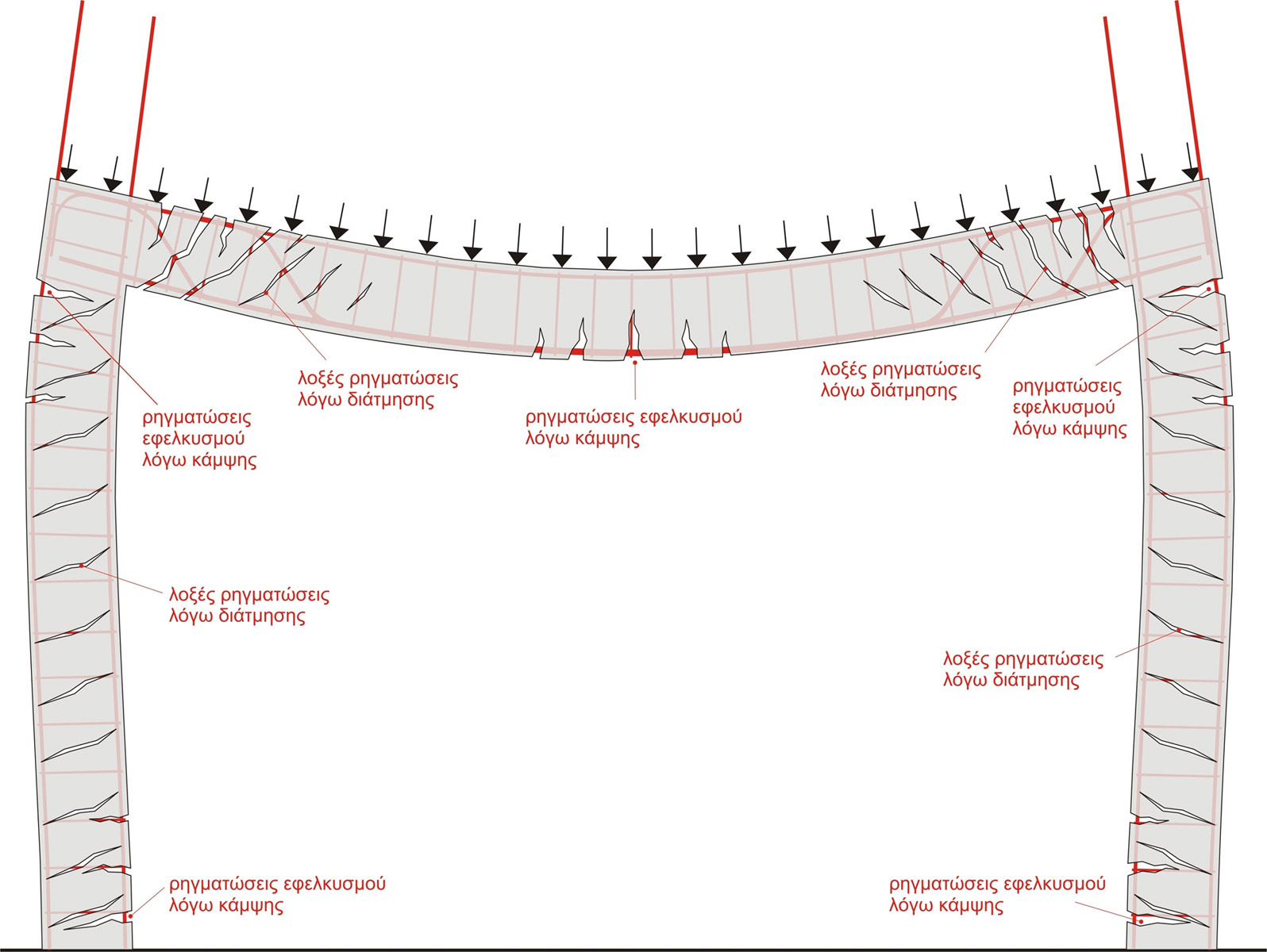 (β) απαιτείται ισχυρός εγκάρσιος οπλισμός με πυκνούς και καλά κλειστούς συνδετήρες, επειδή η ένταση του λοξού εφελκυσμού και επομένως οι λοξές ρηγματώσεις, είναι μεγάλες και αλλάζουν φορά κατά τη διάρκεια του κρίσιμου σεισμού.