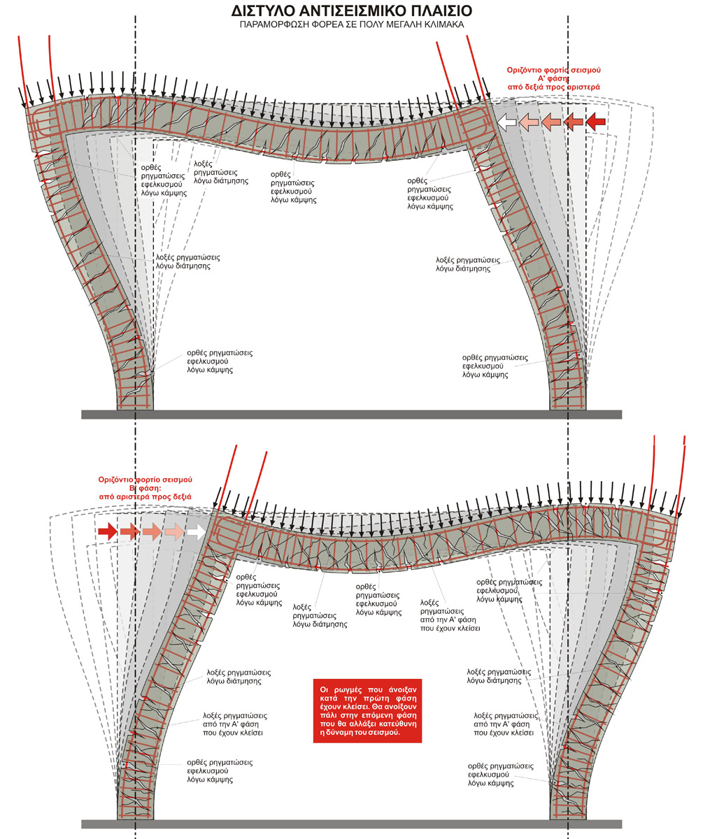 Αναπαράσταση λειτουργίας δίστυλου πλαισίου κατά τη διάρκεια του σεισμού Αναπαράσταση λειτουργίας δίστυλου πλαισίου κατά τη διάρκεια του σεισμού