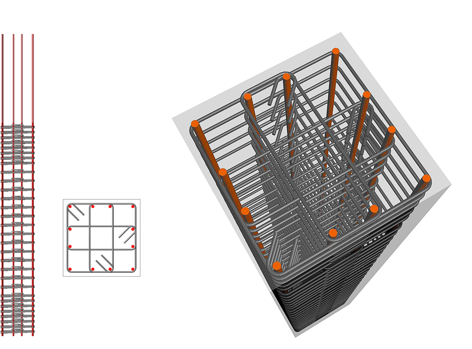 Υποστύλωμα διατομής 500x500 με τρεις συνδετήρες ανά στρώση, που επιβάλλονται από τον αντισεισμικό κανονισμό για την επίτευξη πλαστιμότητας. Υποστύλωμα διατομής 500x500 με τρεις συνδετήρες ανά στρώση, που επιβάλλονται από τον αντισεισμικό κανονισμό για την επίτευξη πλαστιμότητας.