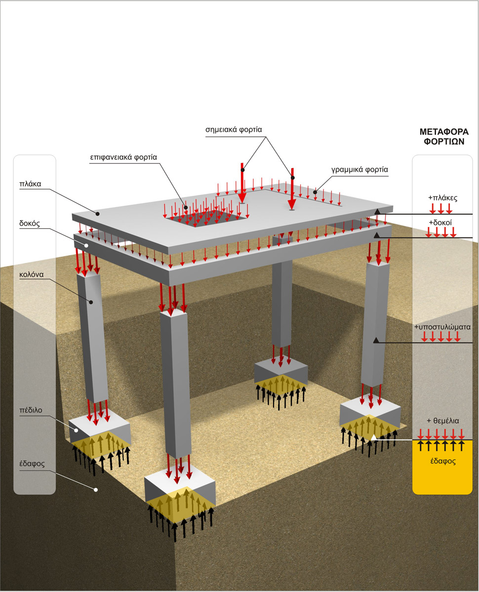 Μεταφορά φορτίων από τις πλάκες του κτιρίου ως το έδαφος