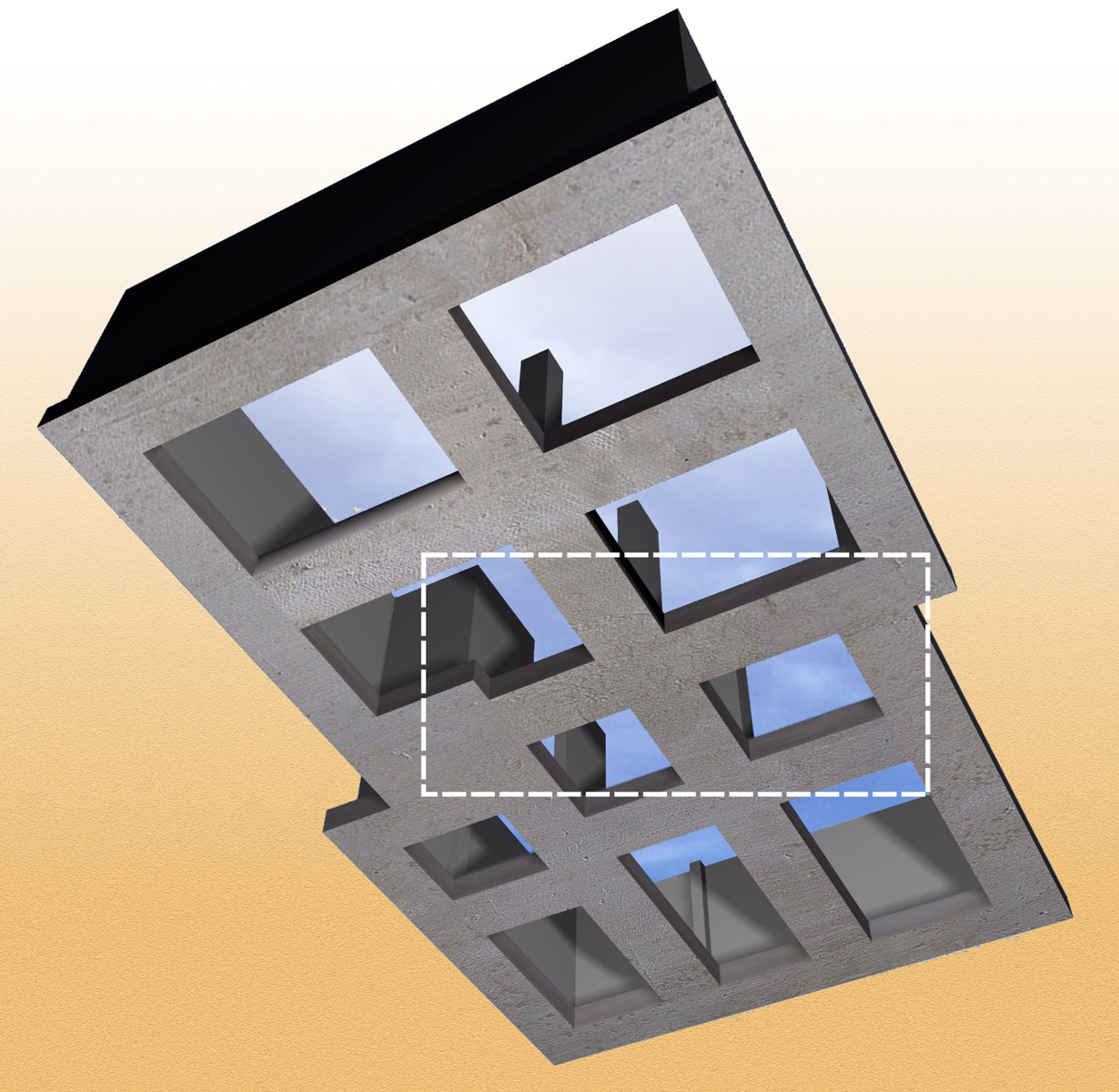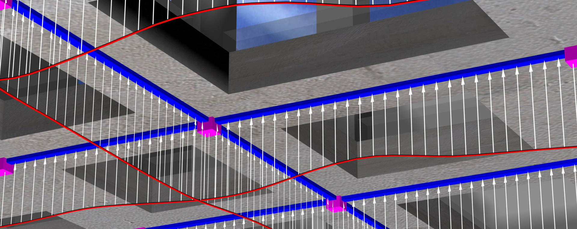 Στην εικόνα που ακολουθεί παρουσιάζεται σε φωτορεαλιστική αναπαράσταση ο σκελετός του κτιρίου του παραδείγματος (έχουν αφαιρεθεί οι πλάκες του τελευταίου ορόφου για καλύτερη εποπτεία).