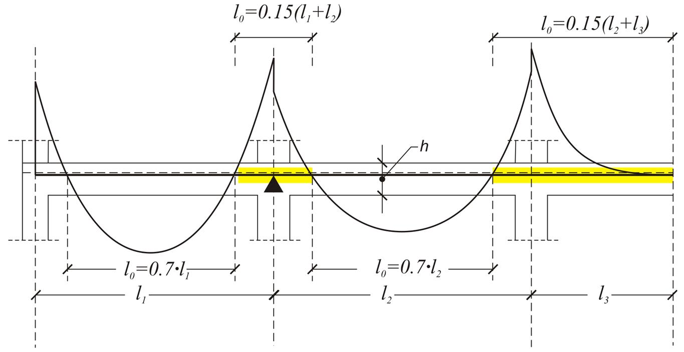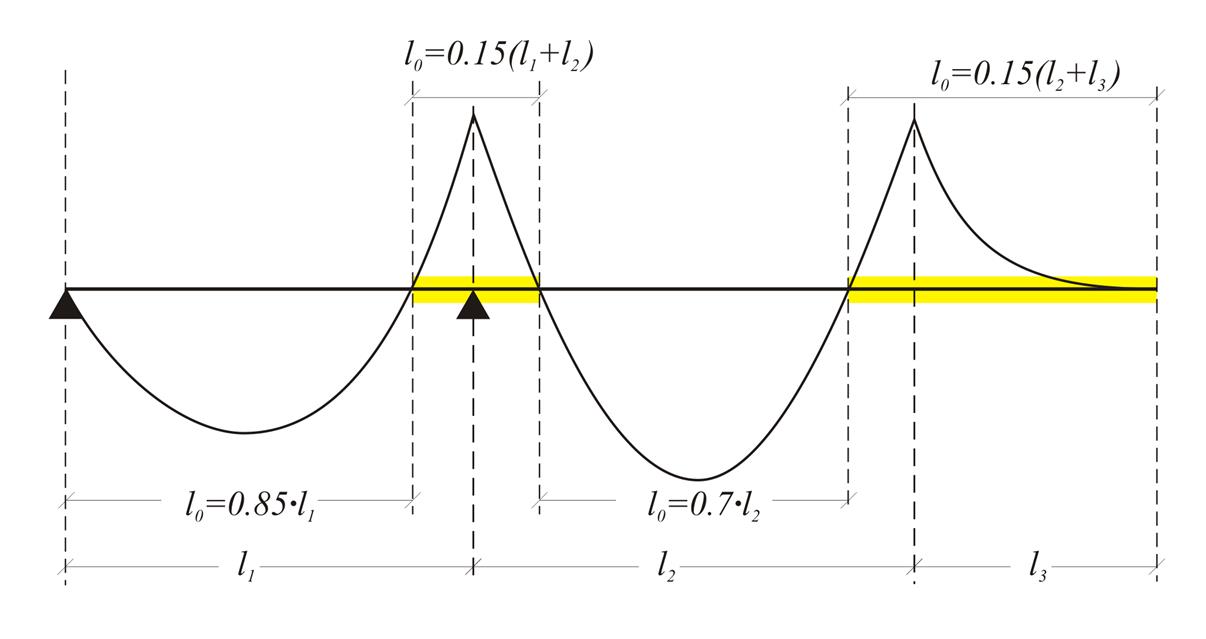 Εικόνα 3.1.2-1: Συνεχής δοκός: lo μήκος μεταξύ διαδοχικών σημείων μηδενισμού ροπών Εικόνα 3.1.2-1: Συνεχής δοκός: lo μήκος μεταξύ διαδοχικών σημείων μηδενισμού ροπών