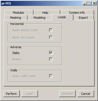 Για να πραγματοποιηθούν οι υπολογισμοί με τις δυσμενείς φορτίσεις, αρκεί να έχουμε επιλέξει στην καρτέλα Loads ενεργή την επιλογή Slabs(=ON) στο πεδίο “Adverse”.