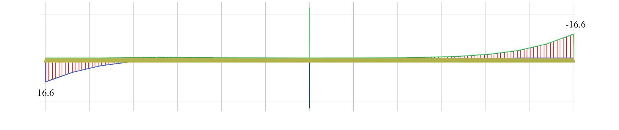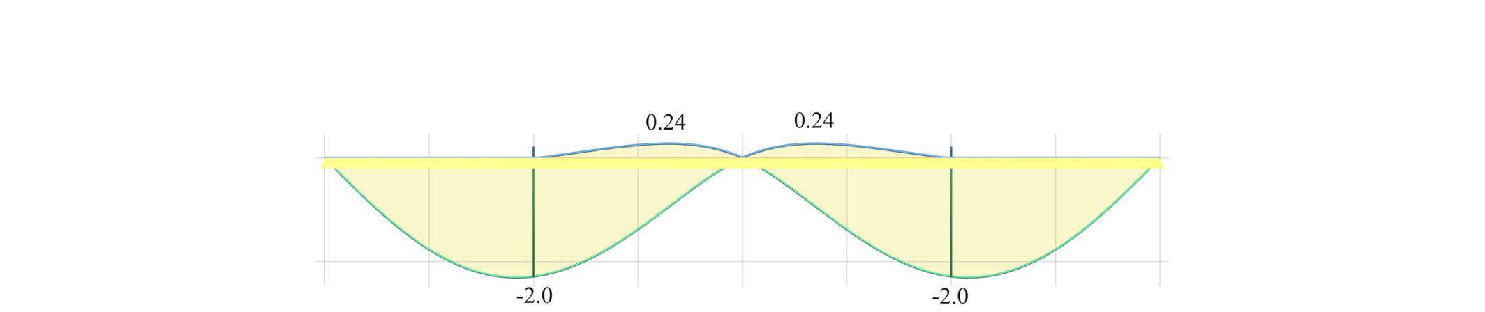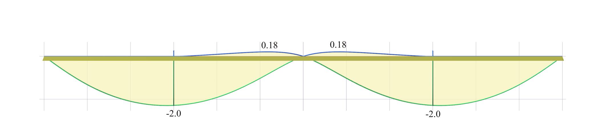 Παρατηρούμε ότι, τα βέλη κάμψης προκύπτουν αρκετά μεγαλύτερα έως και 30%, ενώ παράλληλα εμφανίζονται αρνητικές παραμορφώσεις (οι μπλε γραμμές).
