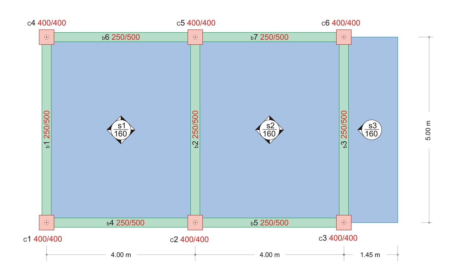 Επειδή η επιρροή του προβόλου s3 επί της γειτονικής του πλάκας δεν είναι γνωστή, υπέρ της ασφαλείας, η πλάκα s2 θεωρείται μονόπακτη, όπως και η πλάκα s1.