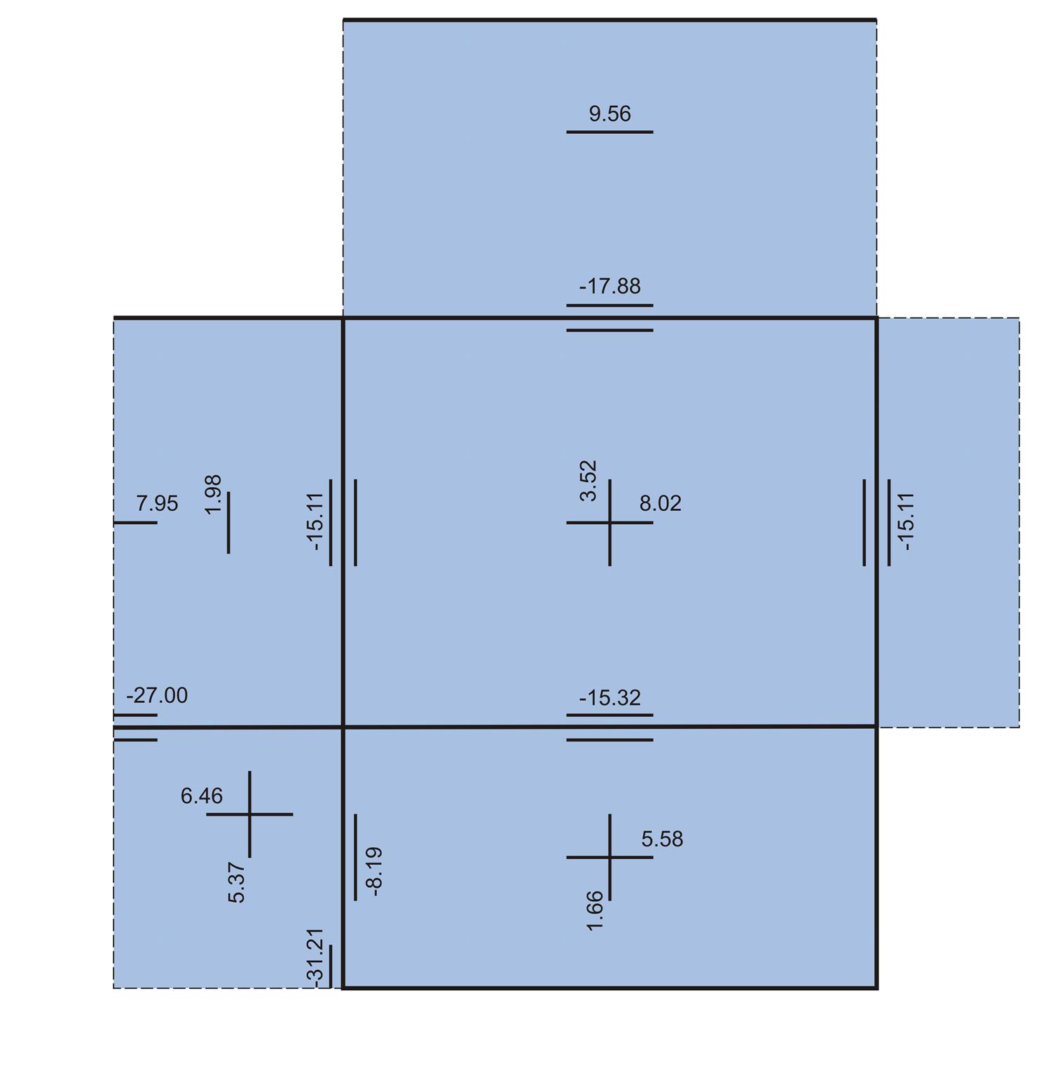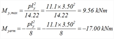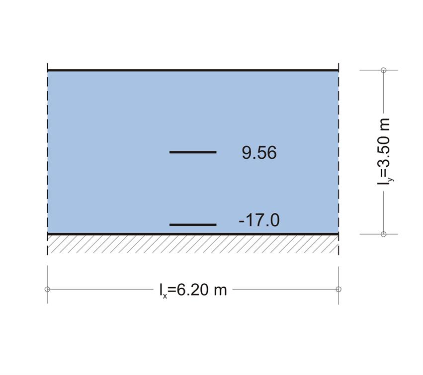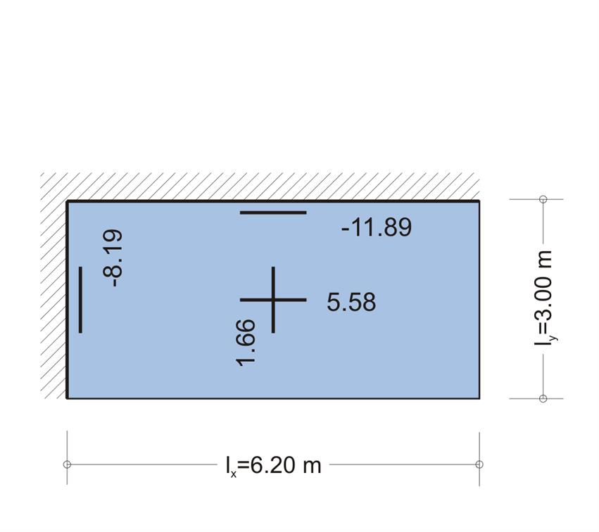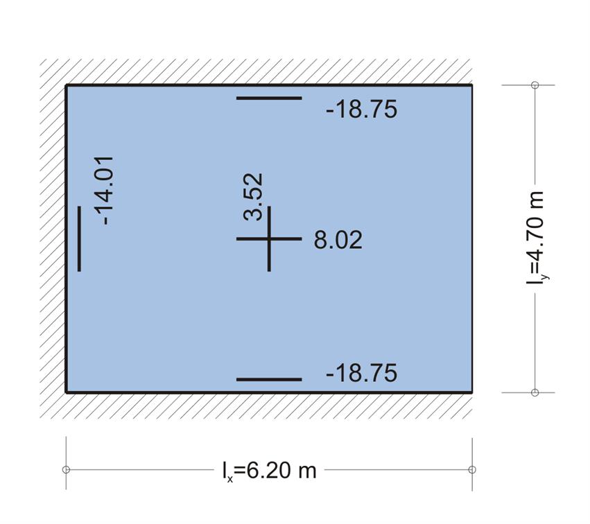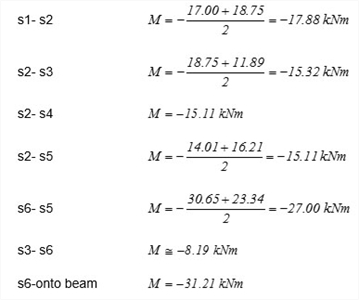- Η ροπή στη στήριξη s5-s6, ή στη στήριξη s6 επί της δοκού, στο μέσον της λωρίδας του 1.00 m, όπου θα γίνει η διαστασιολόγηση, μπορεί να είναι πολύ μικρότερη. Για το λόγο αυτόν ο οπλισμός που θα υπολογισθεί σ’ αυτές τις στηρίξεις θα μειωθεί σημαντικά όσο απομακρυνόμαστε από τις στηρίξεις .