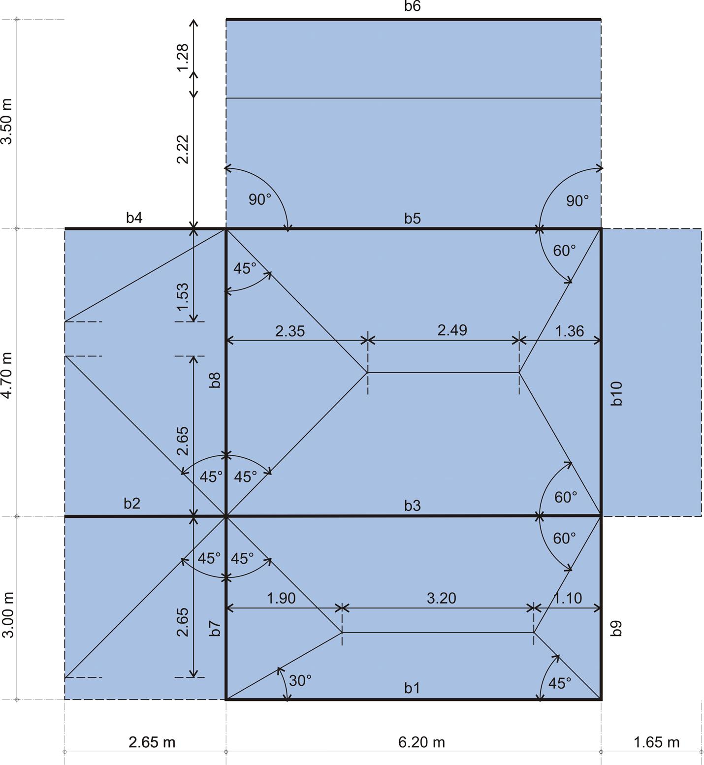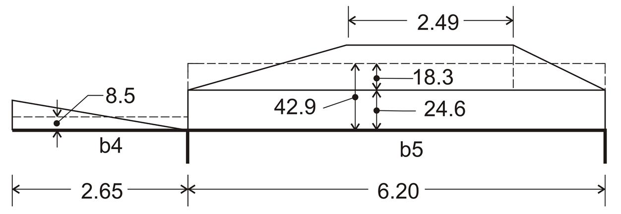 δηλαδή ίδιο περίπου με αυτό της θεώρησης γωνιών. Τα φορτία των πλακών κατανέμονται στις δοκούς γίνεται σύμφωνα με την επιφάνεια επιρροής τους. Η φόρτιση ( kN/m) σε κάθε σημείο της δοκού ισούται με το φορτίο( kN/m2) επί την τετμημένη (m). Παράδειγμα : Φορτία δοκών b4, b5