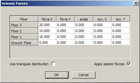Για τη σύγκριση μεταξύ πλαισιακού και μικτού συστήματος δε διαδραματίζει σημαντικό ρόλο το μέγεθος των σεισμικών δυνάμεων, αλλά η κατανομή τους. Για το λόγο αυτό, χρησιμοποιείται η τριγωνική κατανομή, η οποία προσεγγίζει με τον καλύτερο δυνατό τρόπο την πραγματική κατανομή [*]Note 6 Η κατανομή των σεισμικών δυνάμεων προκύπτει από τη δυναμική φασματική μέθοδο, η οποία περιγράφεται στο κεφάλαιο 6. of the majority of buildings designed by an engineer. In the related software the seismic Δύναμηs are imposed on the considered building by selecting Apply Seismic Δύναμηs=ON in the dialog located in the central menu: "Horizontal Δύναμηs" à "Seismic Δύναμηs".
