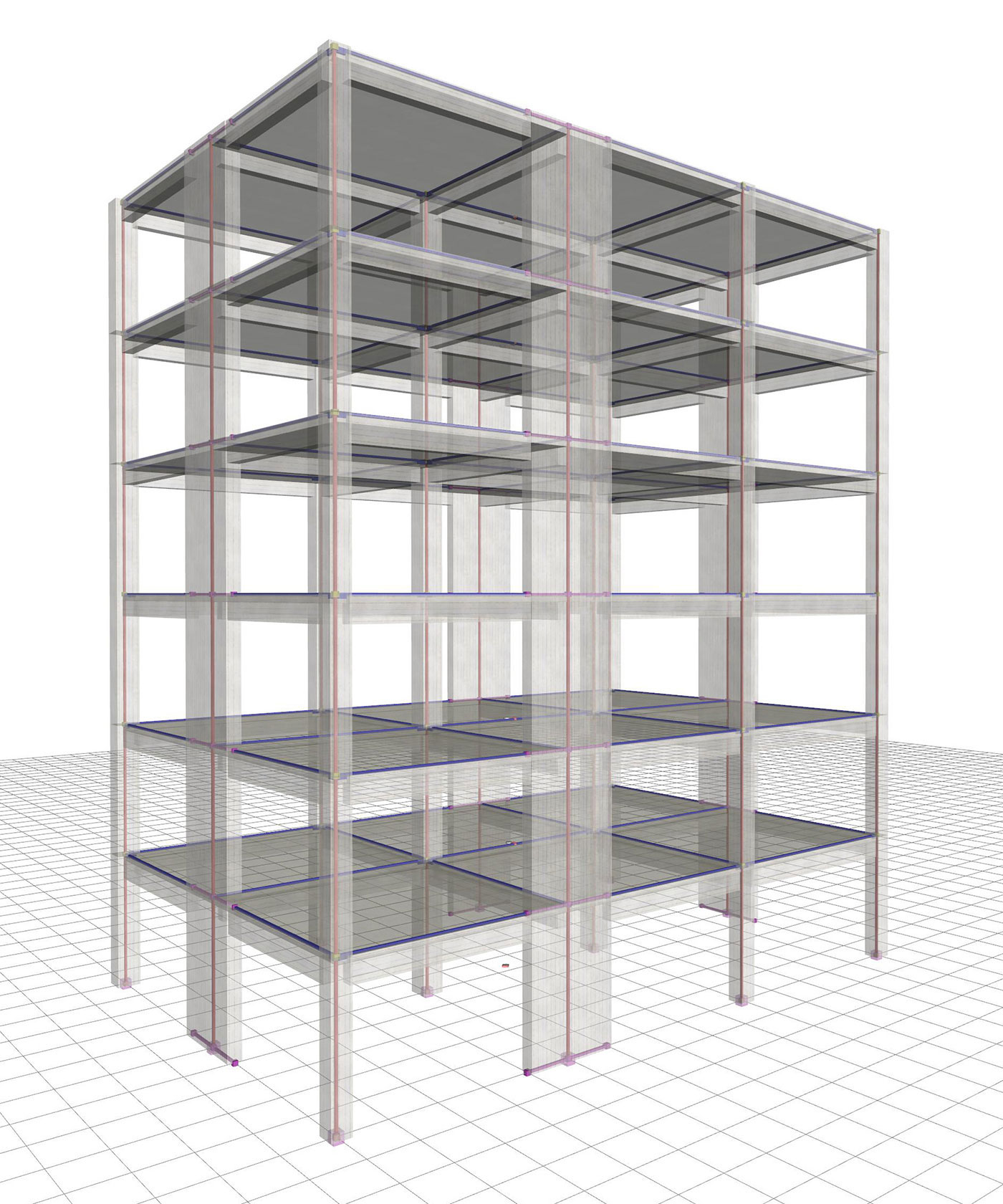 Εικόνα 6.4.2-6: Φορέας και προσομοίωμα. Τοιχωματικό στατικό σύστημα κατά X και Y, με q=3.60 Εικόνα 6.4.2-6: Φορέας και προσομοίωμα. Τοιχωματικό στατικό σύστημα κατά X και Y, με q=3.60