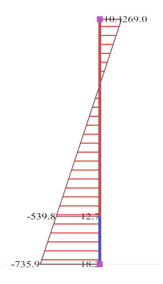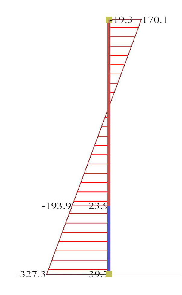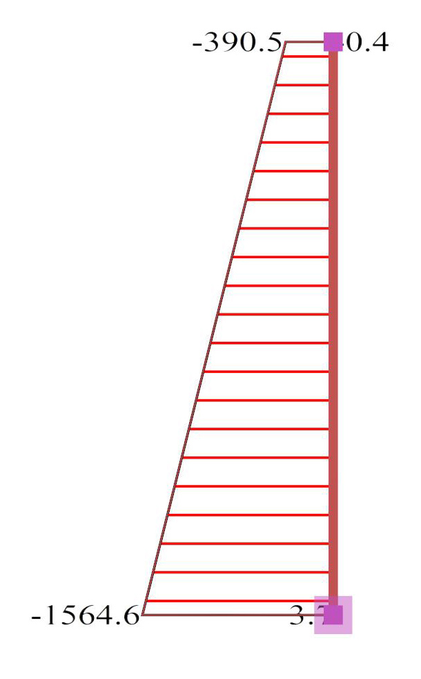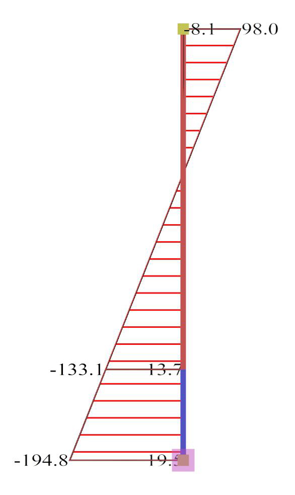| Το στατικό σύστημα είναι διπλό τοιχωματικό και κατά τις δύο διευθύνσεις, λόγω εξασθένησης της τοιχωματικής λειτουργίας που οφείλεται στην ενδοτικότητα του εδάφους σε στροφή. Η χρησιμοποίηση ισχυρών συνδετήριων δοκών θα βελτίωνε πολύ την κατάσταση. Οι ροπές των τοιχίων της πρώτης στάθμης τείνουν περισσότερο στην πλαισιακή λειτουργία παρά στην τοιχωματική. 4η περίπτωση: Υπόγειο με περιμετρικά τοιχία (μελέτη <Β_642-4>)