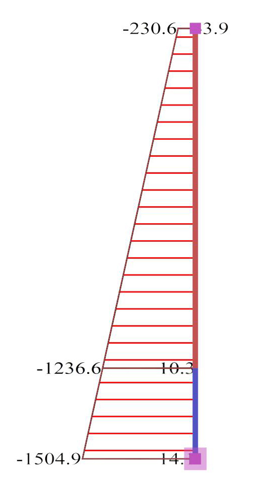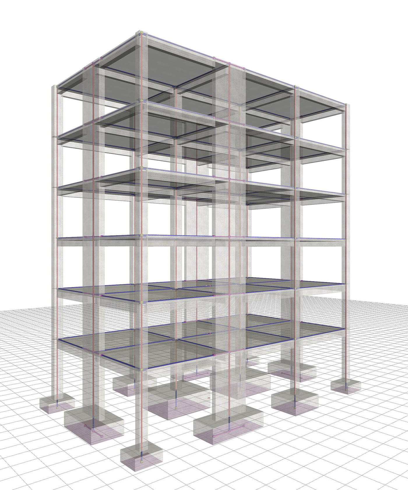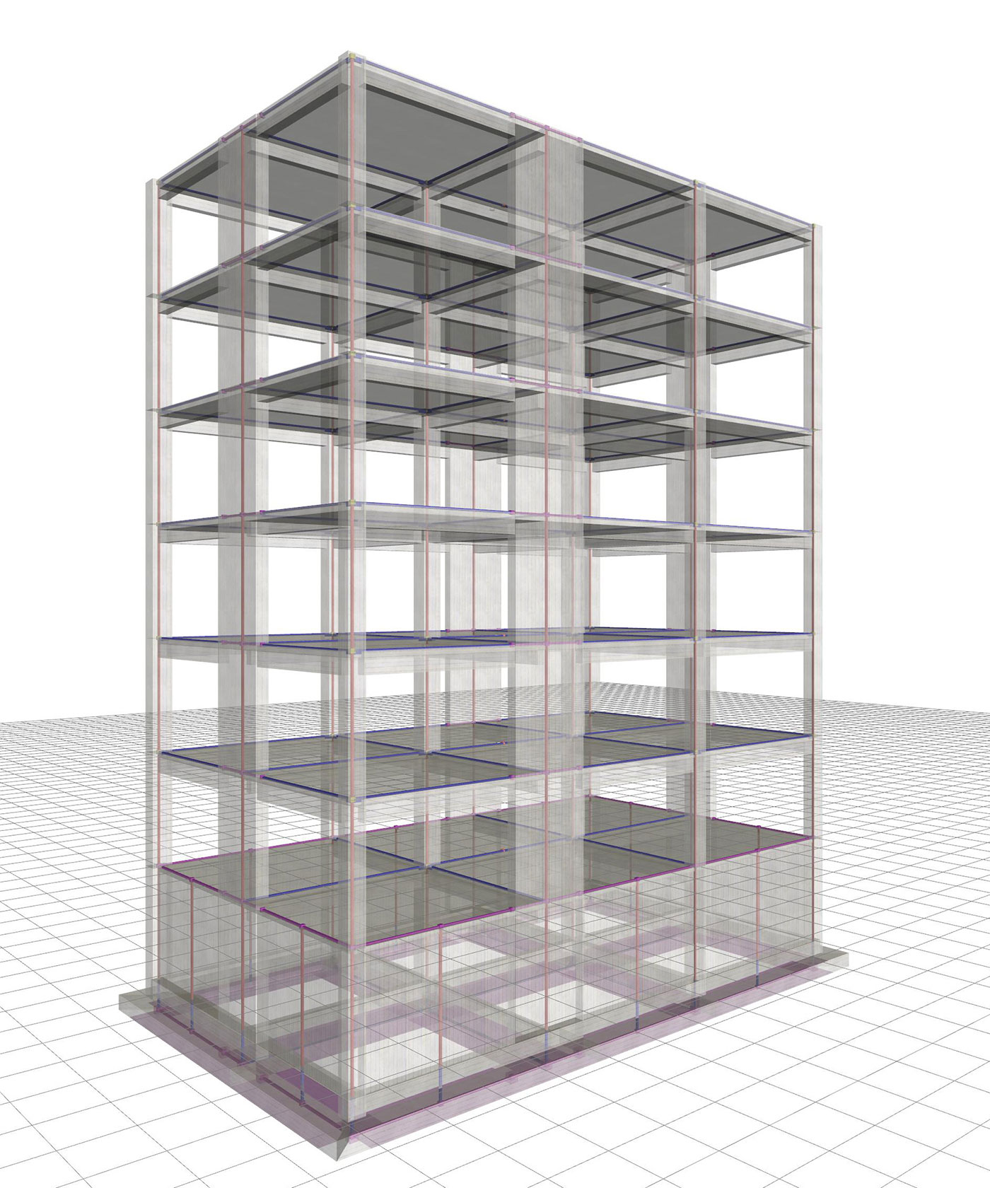 | Οι διατομές των πεδιλοδοκών δεν είναι αρκετά ισχυρές, για τις μεγάλες ροπές κάμψης των περιμετρικών τοιχίων, με αποτέλεσμα το στατικό σύστημα κατά y να μεταπίπτει σε διπλό τοιχωματικό και τελικά να προκύπτει ενιαίο q=3.00. Επίσης, η μετακίνηση του συστήματος κατά x είναι 21.3 mm σε σχέση με τα 25.7 mm του αντίστοιχου πλαισιακού. Οι ροπές των τοιχίων είναι μικρότερες ενώ των υποστυλωμάτων μεγαλύτερες, έναντι της 1ης περίπτωσης. 3η περίπτωση: Θεμελίωση με απλά πέδιλα (μελέτη <Β_642-3>)