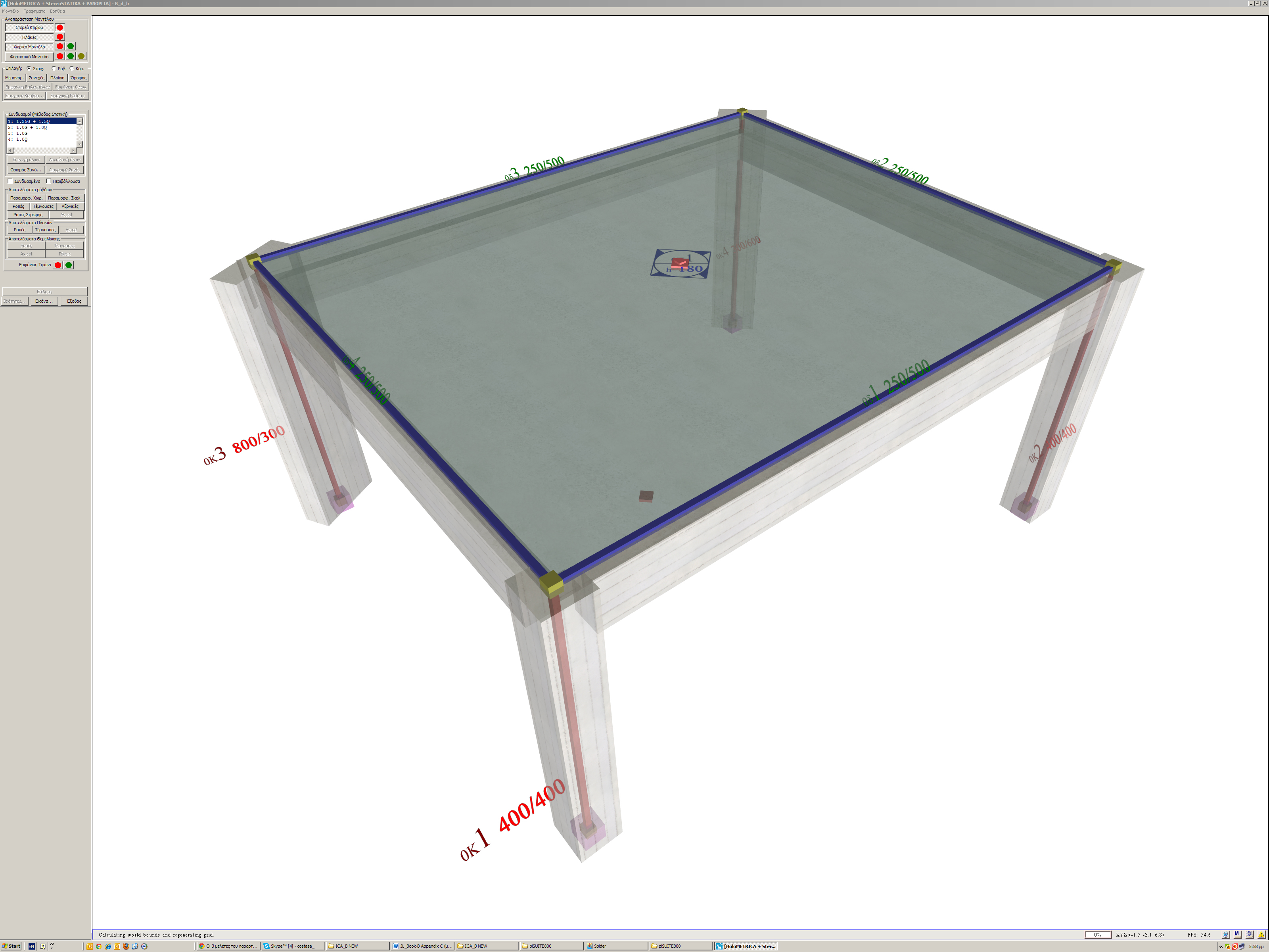Τα ονόματα, τα φορτία, οι συντεταγμένες και οι διαστάσεις των πλακών και κολονών είναι αυτές που αναφέρονται στο σχήμα της § Γ.1, ενώ οι δοκοί έχουν διαστάσεις 250/500. Η ποιότητα σκυροδέματος είναιC30/37 (Ε=32.80 GPa).