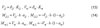 M ζ4 = V ζ4 · h · 0.50=7.0·3.0·0.50=10.5 kNm Mζ4,2=- Mζ4,1=-10.5 kNm