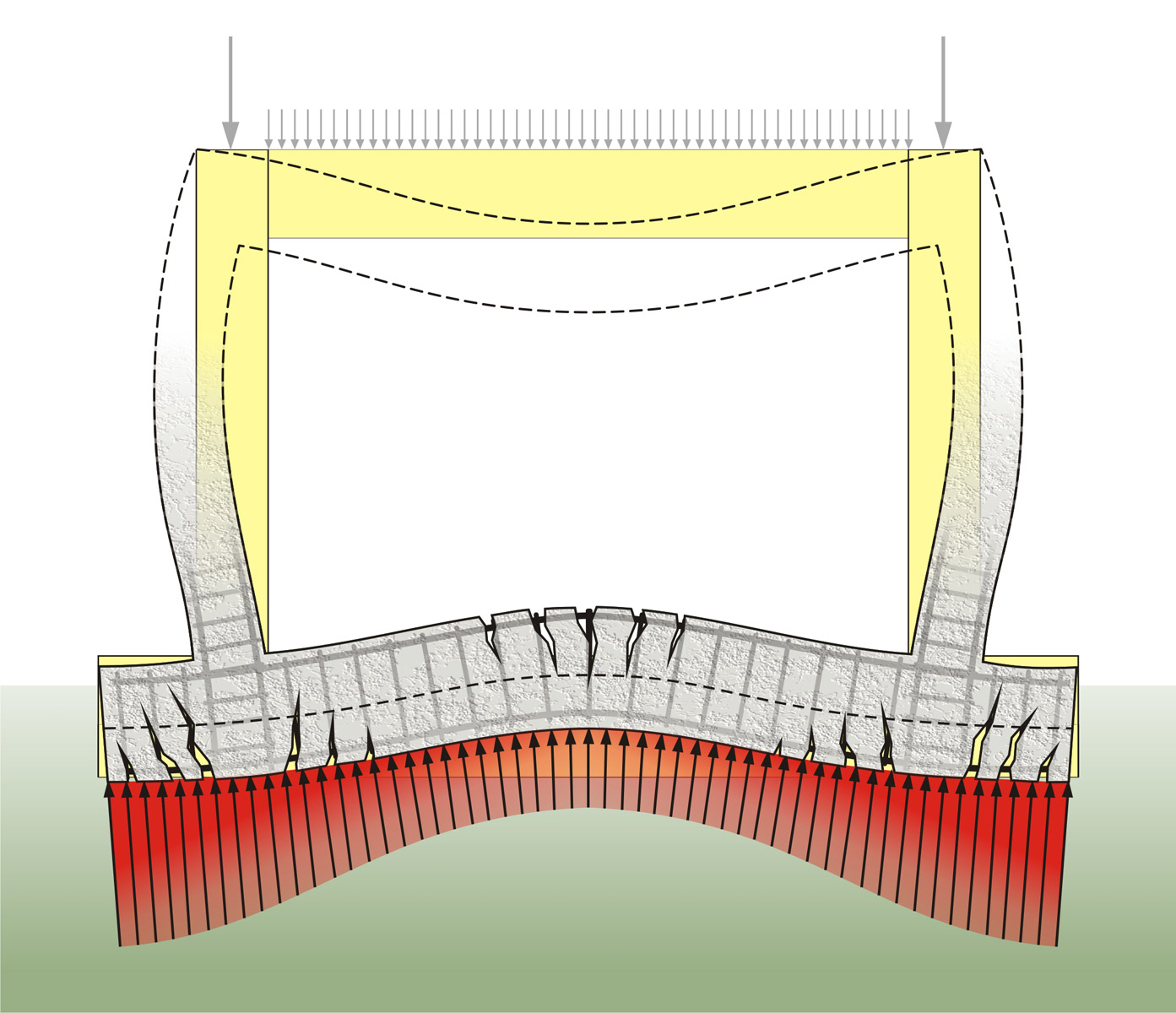 Η αντίδραση του εδάφους φορτίζει την πλάκα του πέλματος από κάτω προς τα πάνω. Η φόρτιση αυτή δημιουργεί παραμορφώσεις στην κάτω επιφάνεια του πέλματος, οι οποίες παραλαμβάνονται από τον οπλισμό.