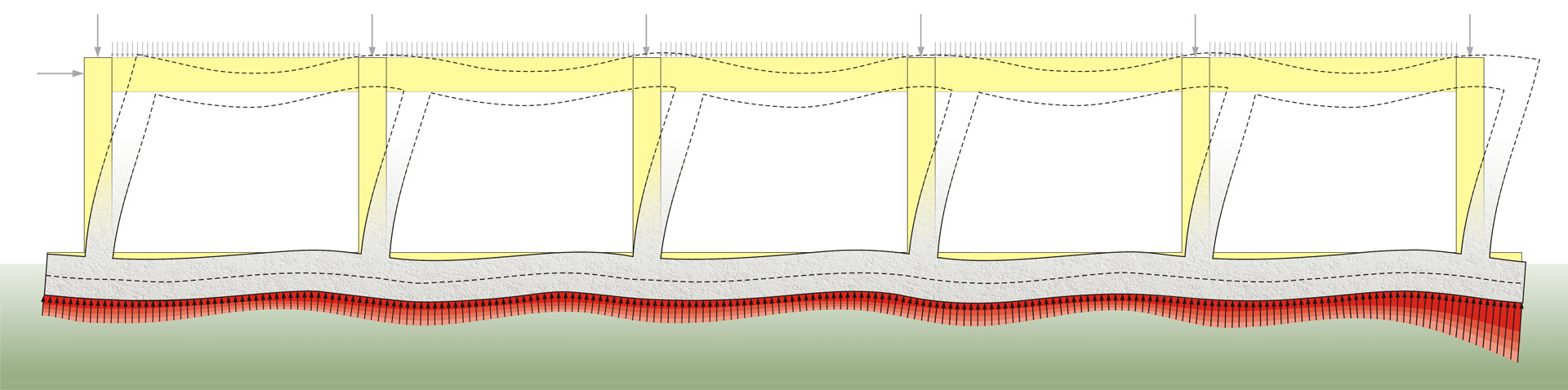Οι τάσεις που δημιουργούνται στο έδαφος, είναι μεγαλύτερες στην περιοχή των υποστυλωμάτων.