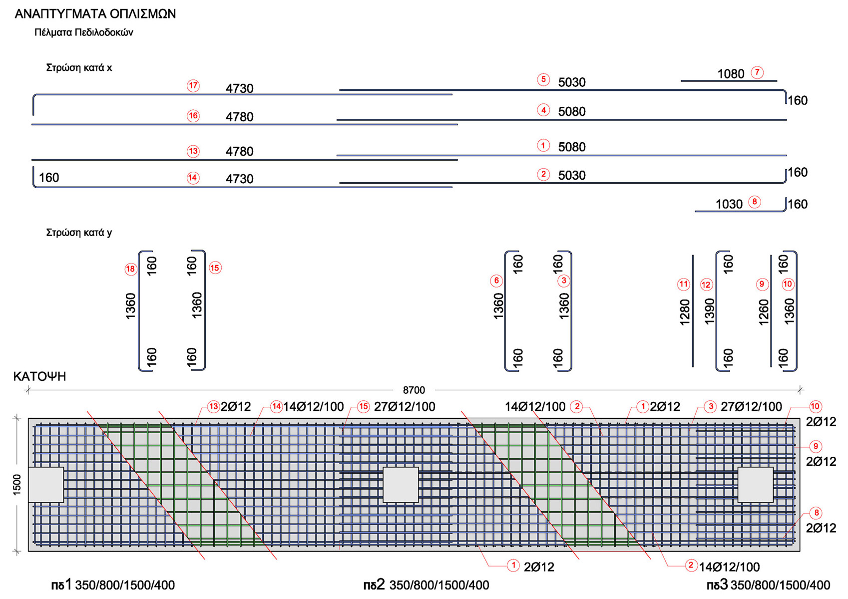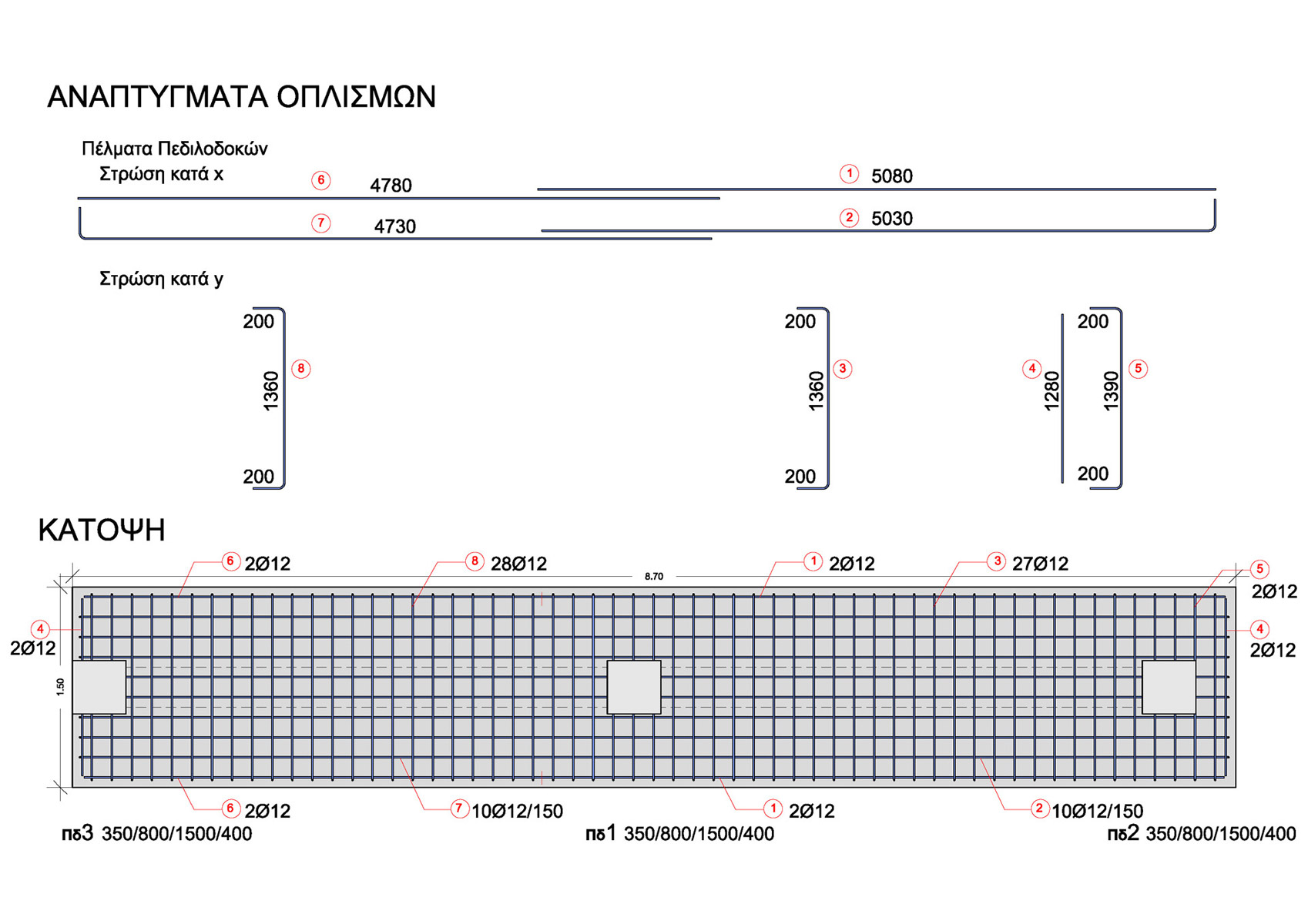 Τρισδιάστατη απεικόνιση οπλισμών πεδιλοδοκού