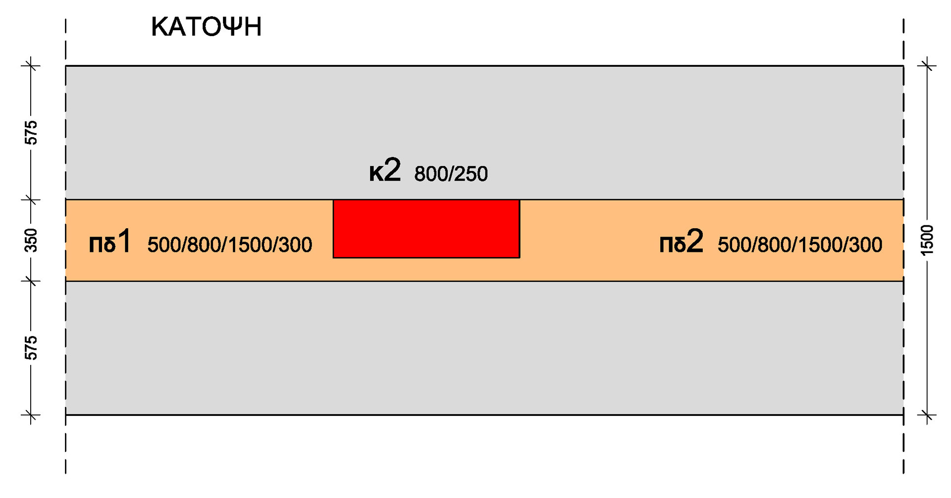 Τα αναπτύγματα του κορμού της συγκεκριμένης πεδιλοδοκού είναι αντίστοιχα των αναπτυγμά-των της προηγούμενης συνεχούς συνδετήριας δοκού.