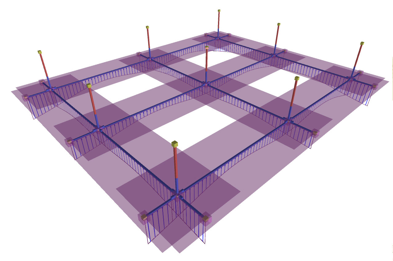 Η συγκεκριμένη μικτή κοιτόστρωση έχει σημεία χωρίς ενισχύσεις, σημεία με ενισχύσεις δοκών και σημεία με ενισχύσεις τοιχείων.