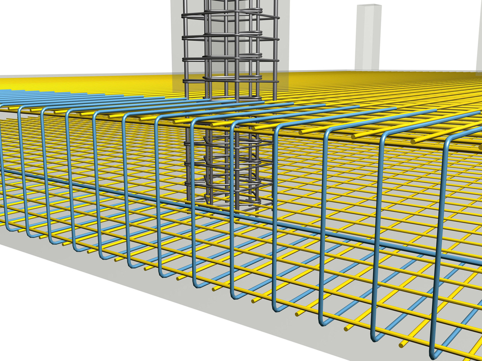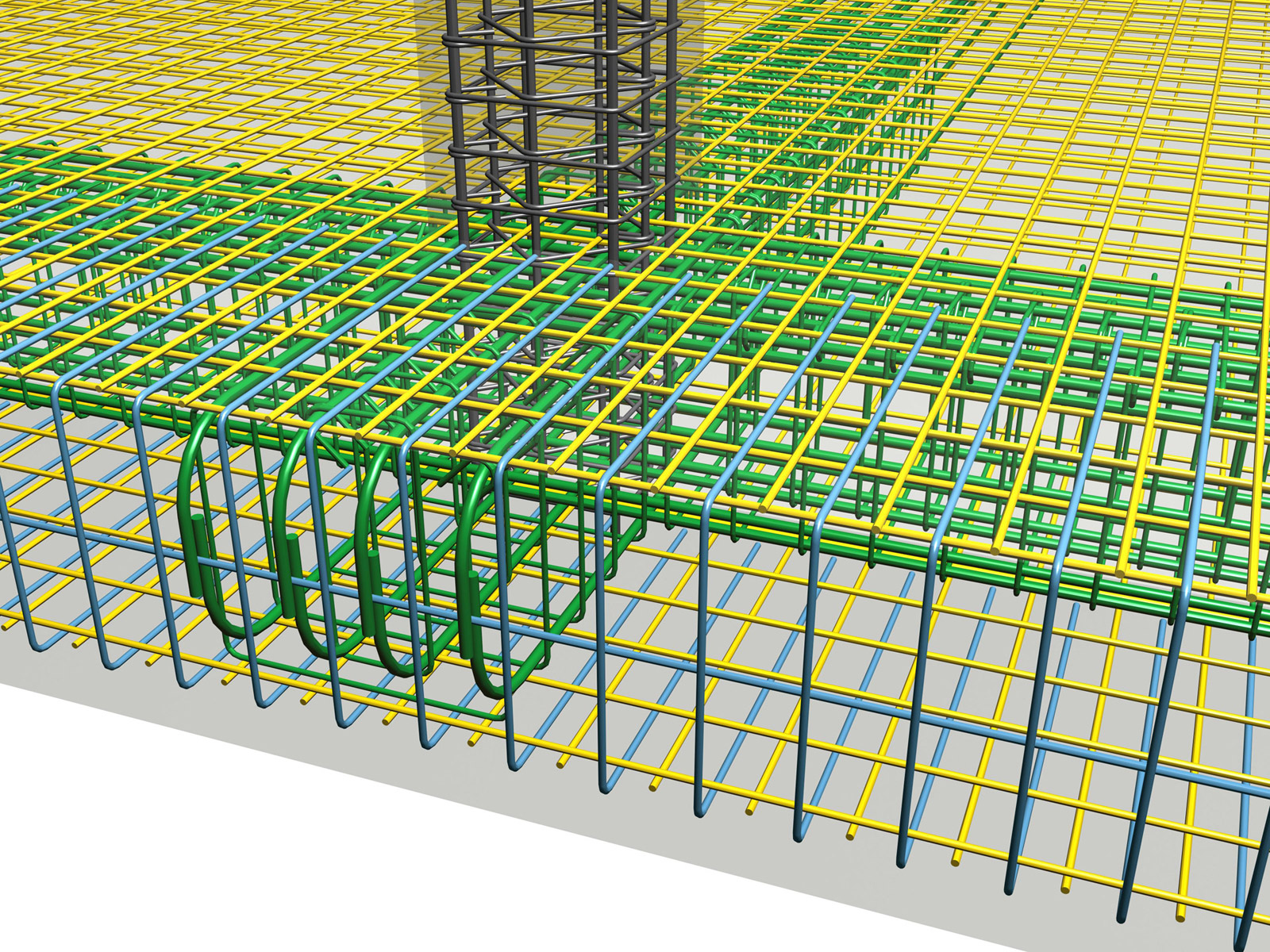 Όταν τα φορτία των υποστυλωμάτων είναι μεγάλα και το πάχος της πλάκας θεμελίωσης αναλογικά μικρό, απαιτείται η χρήση οπλισμού διάτρησης, που μπορεί να αποτελείται από κλωβούς συνδετήρων, όπως σ’ αυτό το παράδειγμα, ή από δέσμες από ανάποδες πάπιες, ή από ειδικά βιομηχανικά στοιχεία.